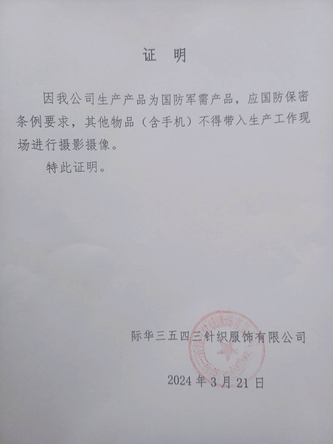 际华三五四三针织服饰有限公司定期检测