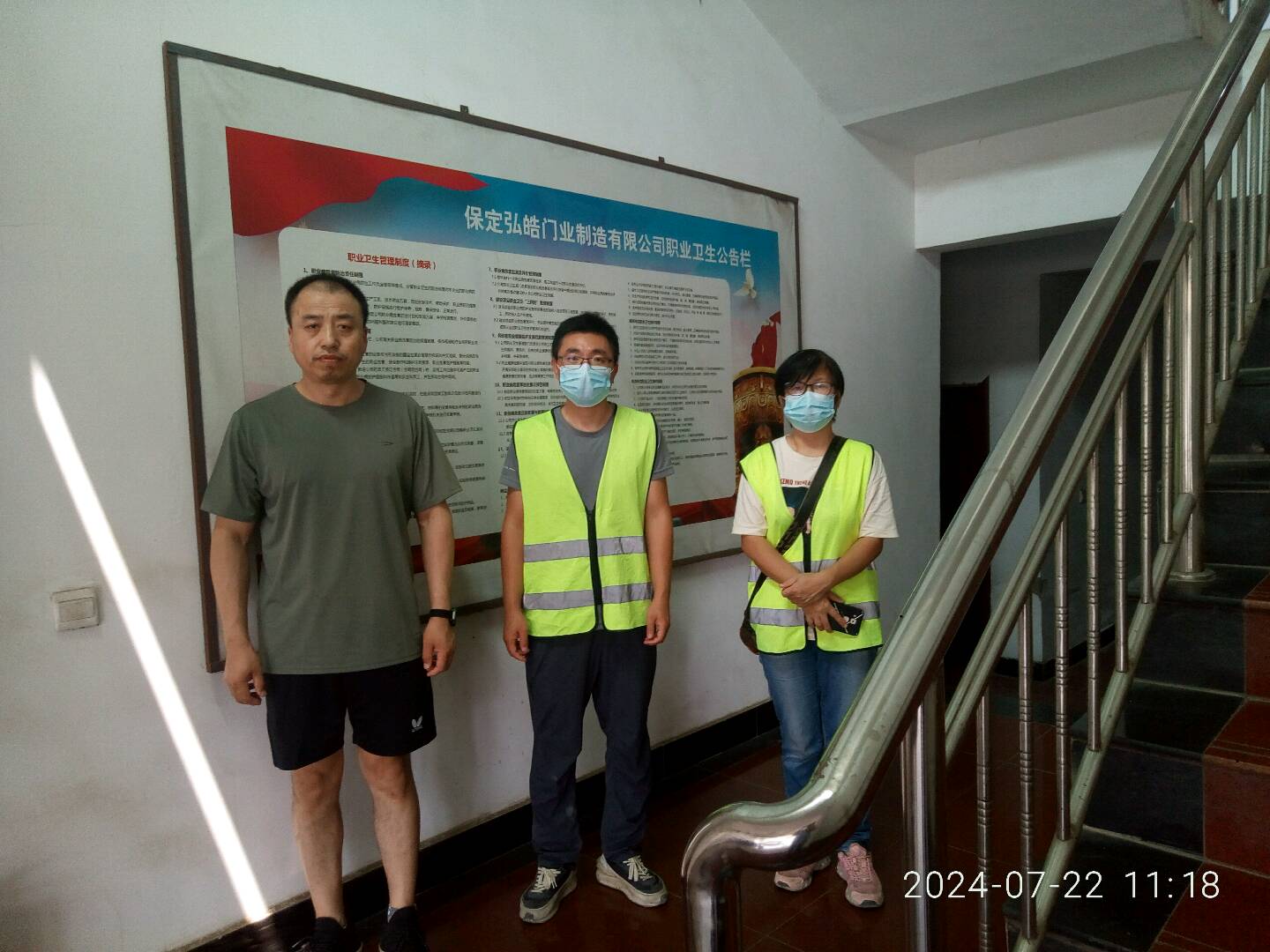 现场采样检测人员 陈立红、王磊 用人单位陪同人 史云飞 时间 2024-07-22-2024-07-24