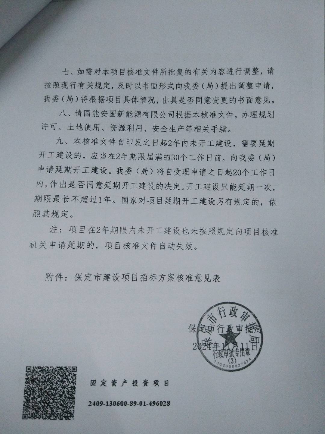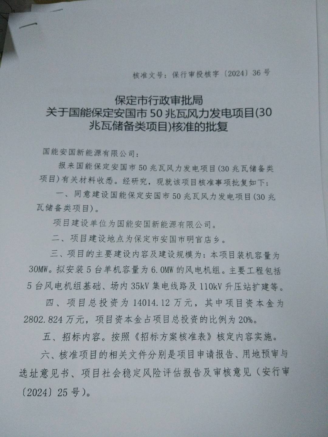 | 项目名称 | 国能安国新能源有限公司国能保定安国市50兆瓦风力发电项目(30兆瓦储备类项目) | ||||