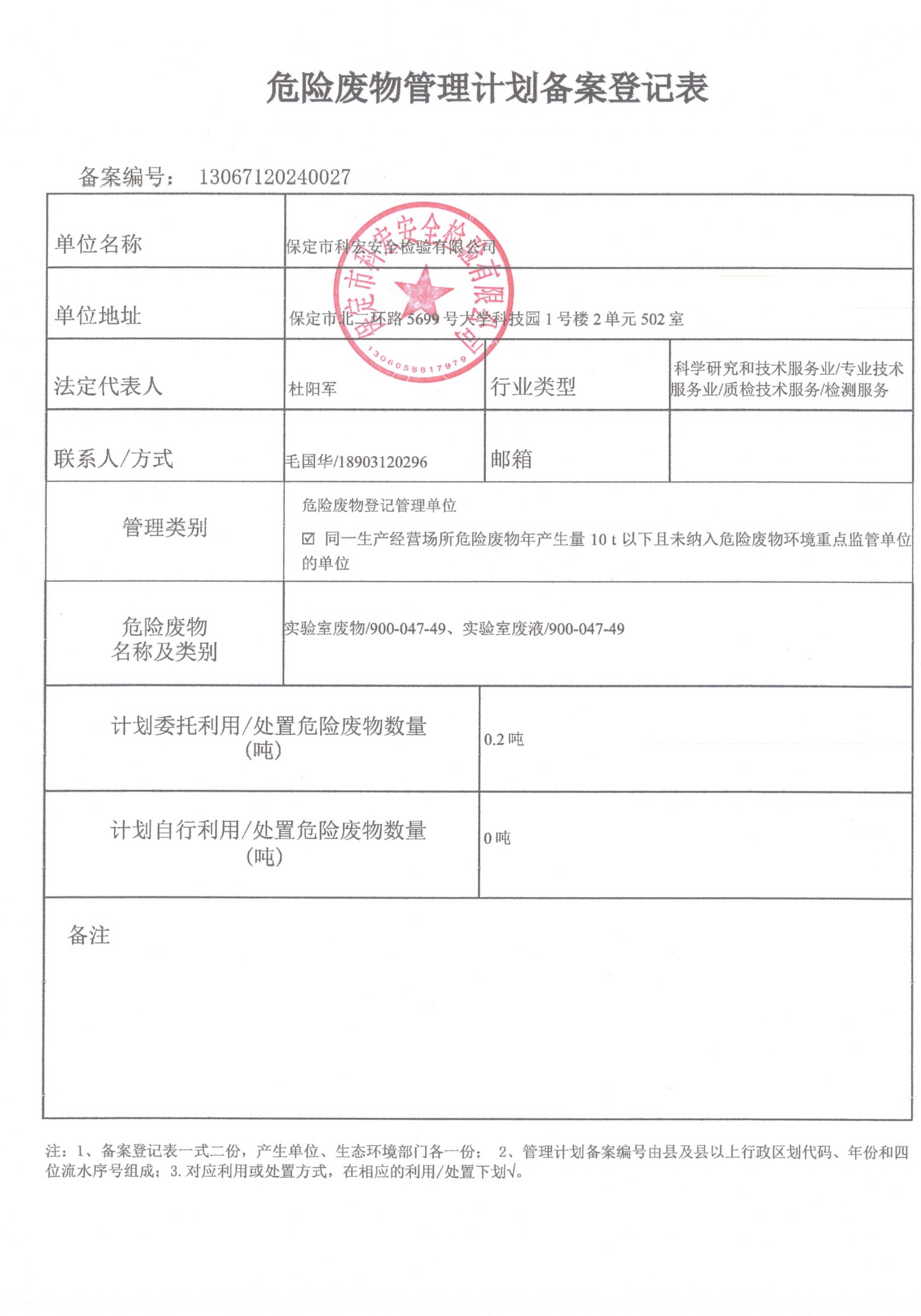 上一篇:2024年度危险废物污染环境防治主体责任承诺书 下一篇:2025年度危险废物管理计划备案登记表